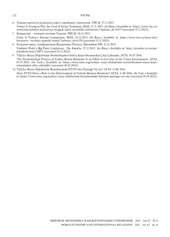 Svistunova I. Russia and Turkey: A New Era? RISS, 11.08.2016. (In Russ.) Available at: https://riss.ru/analitica/rossiya-i-turtsiya-novaya-era/ (accessed 15.11.2022).