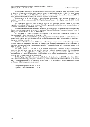 15. Сбережение населения России: проблемы, задачи, пути решения. Научный доклад / под ред. академика РАН Б. Н. Порфирьева. М.: Артик Принт, 2022. 168 с.