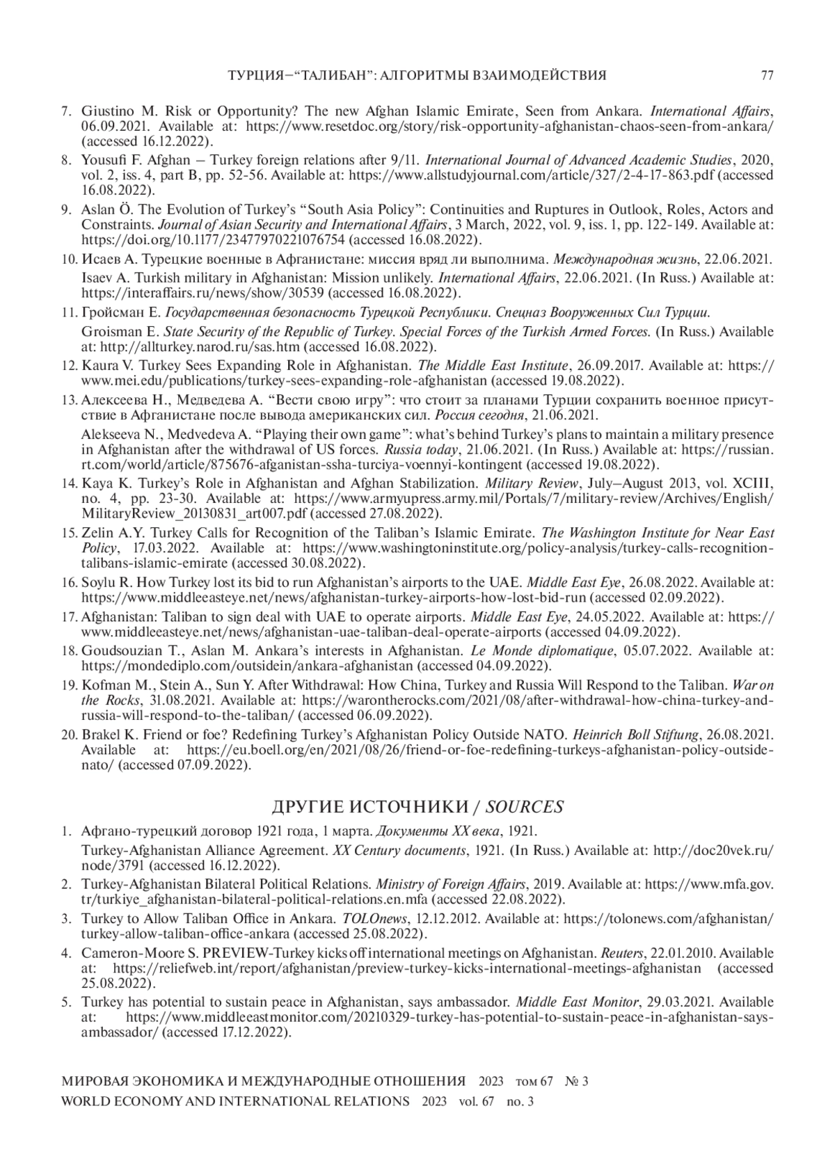 10. Исаев А. Турецкие военные в Афганистане: миссия вряд ли выполнима. Международная жизнь, 22.06.2021.