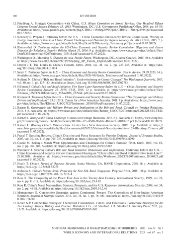 21. Ratner E. Geostrategic and Military Drivers and Implications of the Belt and Road. Council on Foreign Relations, 2018. 8 p. Available at: https://www.uscc.gov/sites/default/files/Ratner_USCC%20Testimony%20CORRECTED.pdf (accessed 01.07.2022).