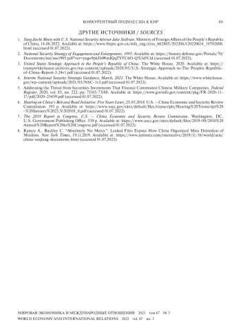 5. Ломанов А.В. Китайские дискуссии об отношениях с США и торговой войне. Мировая экономика и международные отношения, 2019, т. 63, № 10, сс. 17-29. EDN: PPYYQX