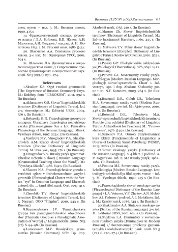 18. Фомина М.И. Современный русский язык. Лексикология: учебник для филол. 127Вестник ГСГУ № 2 (54) Языкознание спец. вузов. - изд. 3. М.: Высшая школа, 1990. 415 с.