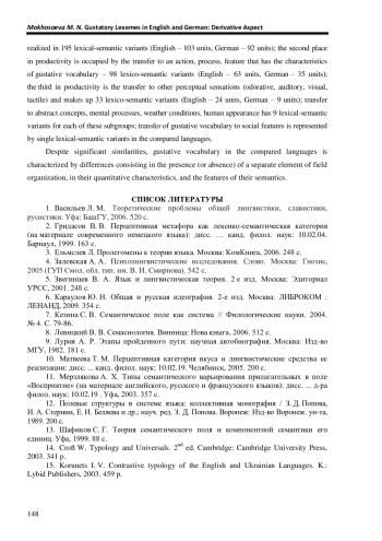2. Гридасов В. В. Перцептивная метафора как лексико-семантическая категория (на материале современного немецкого языка): дисс. … канд. филол. наук: 10.02.04. Барнаул, 1999. 163 с.