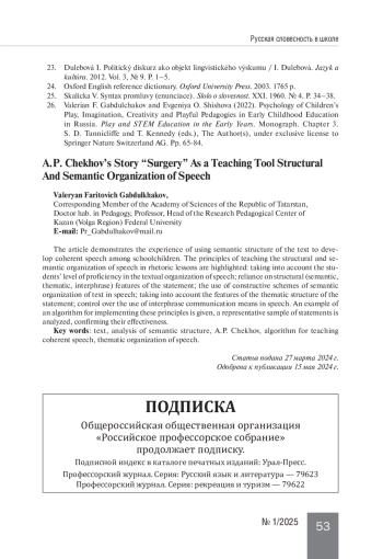 4. Габдулхаков В.Ф. Развитие связной речи на уроках русского языка // Начальная школа. Москва. 1987. № 5. С. 22-25.