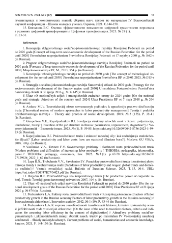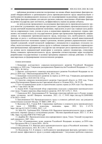 10. Лепа Р.Н., Трубчанин В.В., Савченко И.В. Парадоксы производительности труда и заработной платы: мировые тренды и отечественные реалии // Вестник евразийской науки. 2023. Т. 15. № 4. URL: https://esj.today/PDF/47ECVN423.pdf. EDN: KDWLON