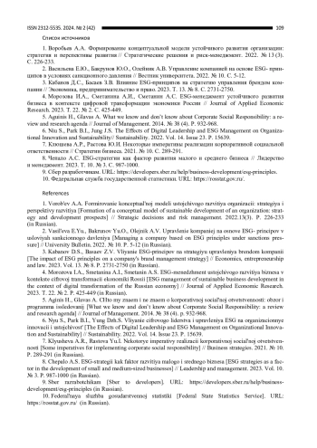 8. Чепало А.С. ESGстратегии как фактор развития малого и среднего бизнеса // Лидерство и менеджмент. 2023. Т. 10. № 3. С. 9871000.