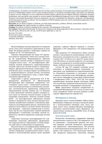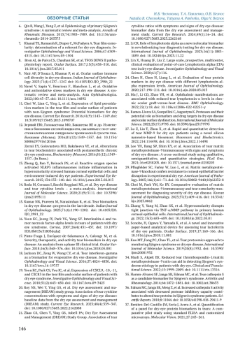 15. Kumar NR, Praveen M, Narasimhan R, et al. Tear biomarkers in dry eye disease: progress in the last decade. Indian Journal of Ophthalmology. 2023;71(4):1190-1202. DOI: 10.4103/IJO.IJO_2981_22 EDN: IUCHWE