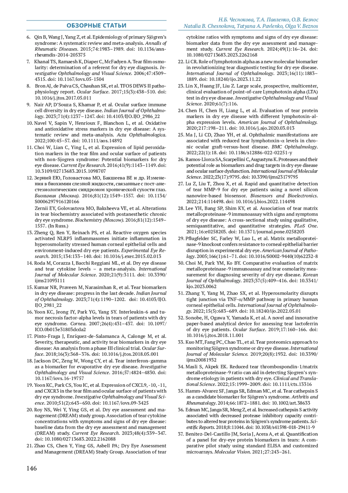 57. Wang HH, Chen WY, Huang YH, et al. Interleukin-20 is involved in dry eye disease and is a potential therapeutic target. Journal of Biomedical Science. 2022;29(1):36. DOI: 10.1186/s12929-022-00821-2 EDN: TJJDAG