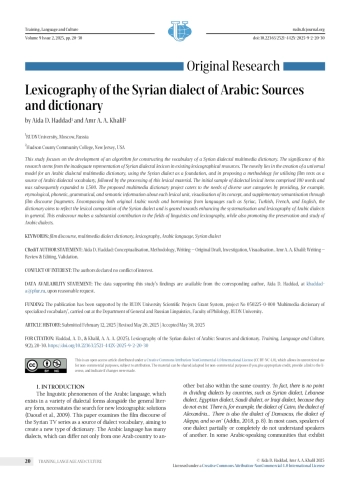 This study focuses on the development of an algorithm for constructing the vocabulary of a Syrian dialectal multimedia dictionary. The significance of this research stems from the inadequate representation of Syrian dialectal lexicon in existing lexicographical resources. The novelty lies in the creation of a universal model for an Arabic dialectal multimedia dictionary, using the Syrian dialect as a foundation, and in proposing a methodology for utilising film texts as a source of Arabic dialectal vocabulary, followed by the processing of this lexical material. The initial sample of dialectal lexical items comprised 100 words and was subsequently expanded to 1,500. The proposed multimedia dictionary project caters to the needs of diverse user categories by providing, for example, etymological, phonetic, grammatical, and semantic information about each lexical unit, visualisation of its concept, and supplementary semantisation through film discourse fragments. Encompassing both original Arabic words and borrowings from languages such as Syriac, Turkish, French, and English, the dictionary aims to reflect the lexical composition of the Syrian dialect and is geared towards enhancing the systematisation and lexicography of Arabic dialects in general. This endeavour makes a substantial contribution to the fields of linguistics and lexicography, while also promoting the preservation and study of Arabic dialects.