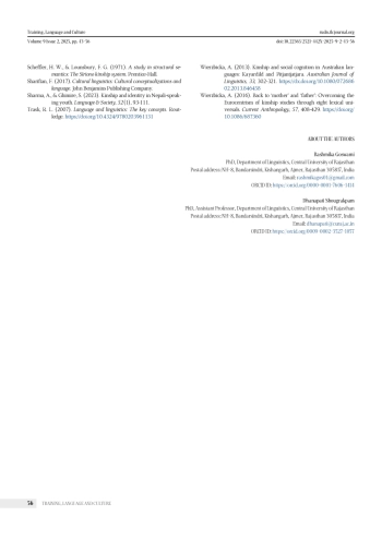 23. Wierzbicka, A. (2013). Kinship and social cognition in Australian languages: Kayardild and Pitjantjatjara. Australian Journal of Linguistics, 33, 302-321. DOI: 10.1080/07268602.2013.846458