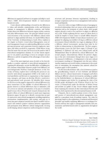 Intended primarily for teachers and students of cross-cultural/ intercultural management, the Encyclopaedia is divided into eight sections. Part 1 examines conceptualisations and components of culture in international business management, while Part 2 explores similarities and differences between cultures. Part 3 focuses on concepts governing the interaction between business cultures, while Part 4 examines the principles of developing cultural awareness. Relating to an international working environment, Part 5 is devoted to cultural identity and diversity. Part 6 deals with managing people through cross-cultural management, and Part 7 deals with organisational and institutional perspectives, with chapters on networks and organisational culture and how it can change, before signing off in Part 8 with a review of theories of cross-cultural management. It is a book for academics, students, trainers, and managers wishing to increase their knowledge of the intellectual background to their work.