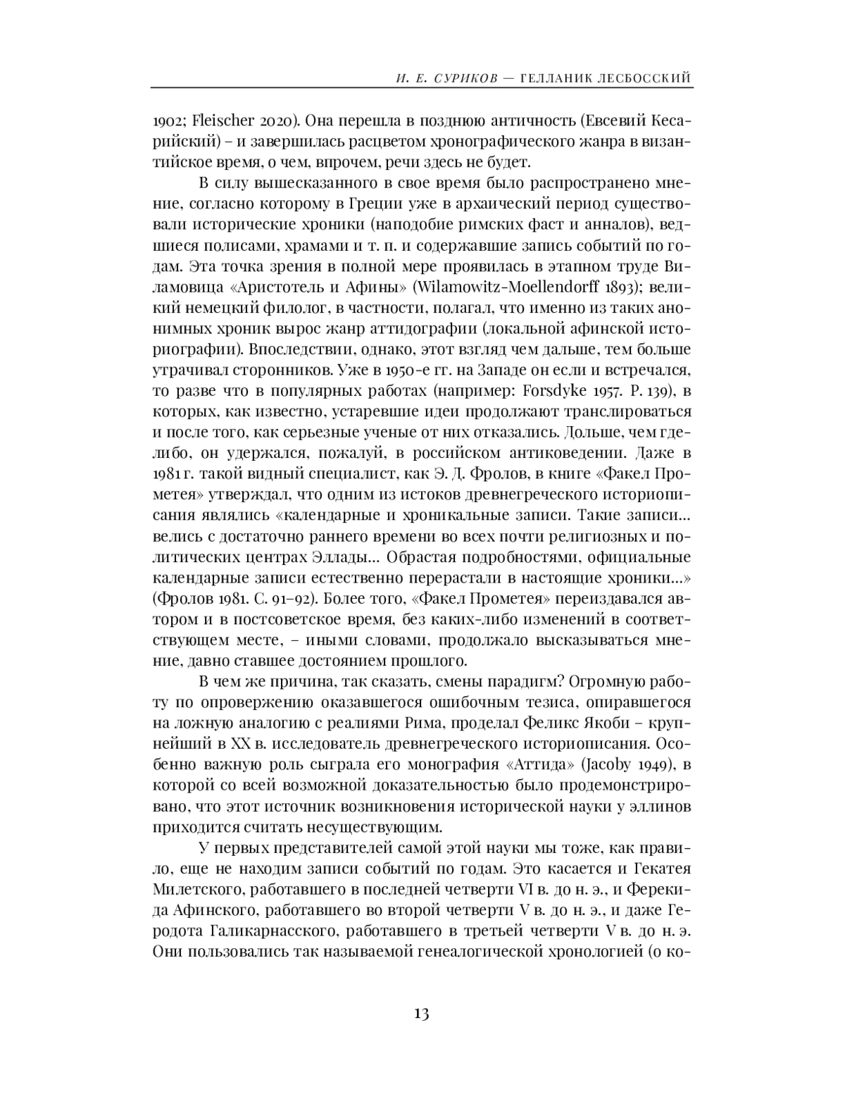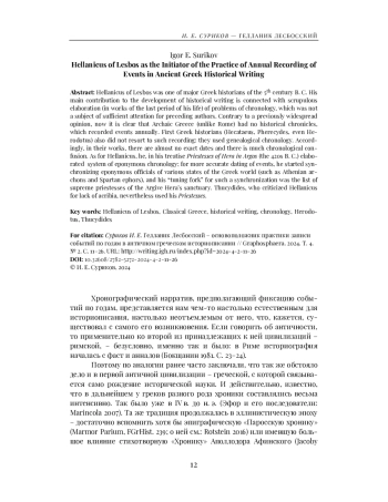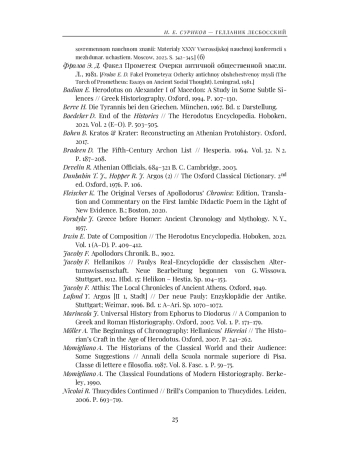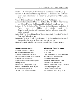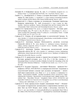 Surikov I. E. K khronologii zhizni i tvorchestva istorika Gellanika (Towards the Chronology of the Life and Work of the Historian Hellanicus) // Vestnik drevney istorii. 2021. T. 81. № 4. S. 837-862. (б).
