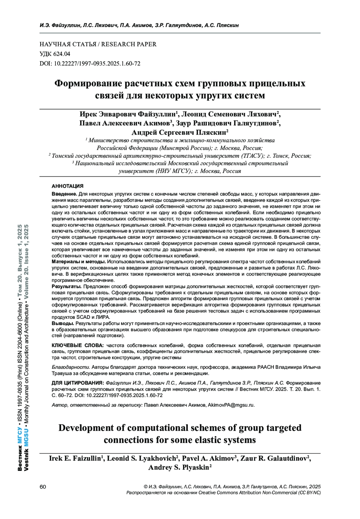 4. Ляхович Л.С., Акимов П.А. О формировании расчетных схем некоторых дополнительных связей для упругих систем. Часть 1. Теоретические основы подхода // Промышленное и гражданское строительство. 2022. № 9. С. 4-10. DOI: 10.33622/0869-7019.2022.09.04-10 EDN: GPKYQS