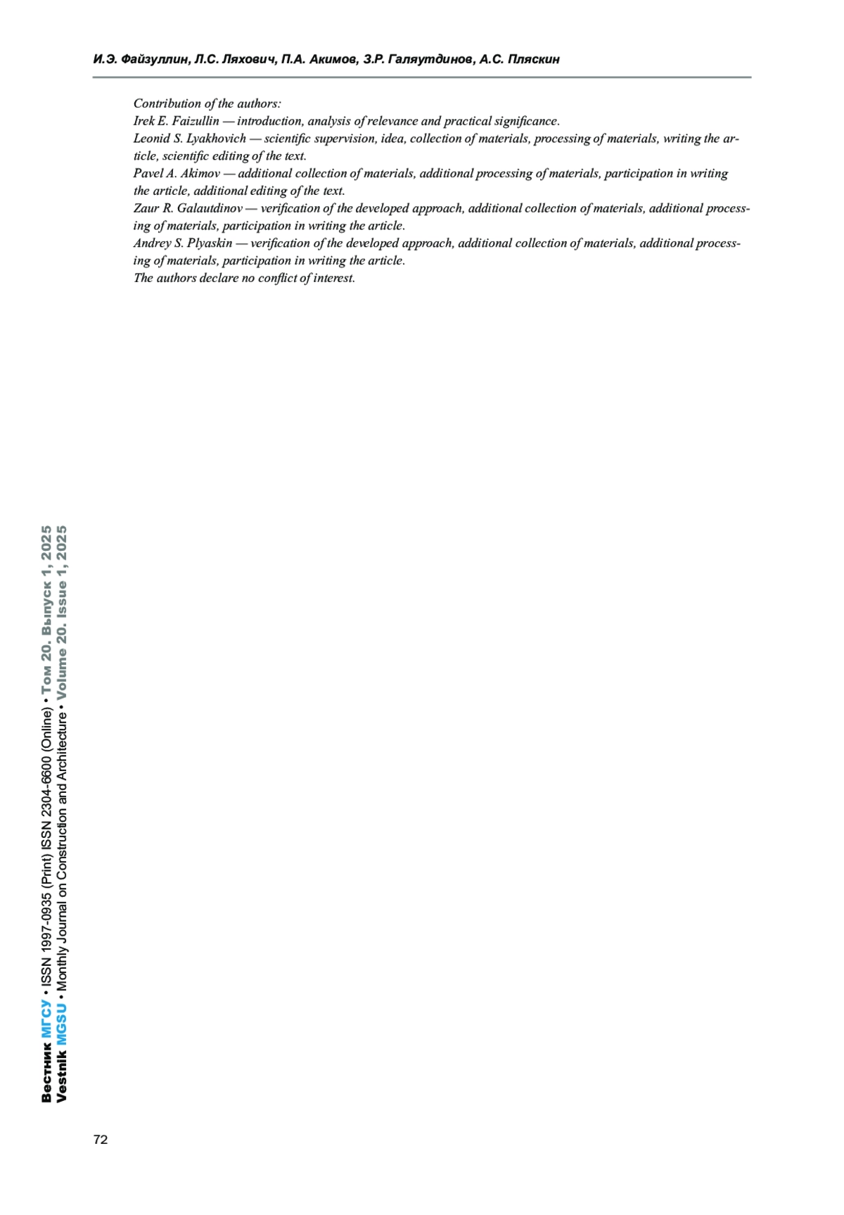 Выводы. Результаты работы могут применяться научно-исследовательскими и проектными организациями, а также в образовательных организациях высшего образования при подготовке спецкурсов для строительных специальностей (направлений подготовки).