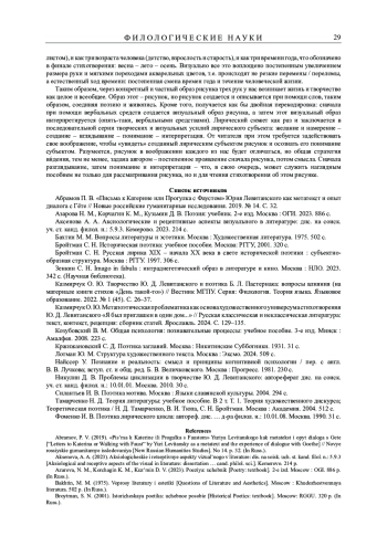 1. Абрамов П. В. “Письма к Катерине или Прогулка с Фаустом” Юрия Левитанского как метатекст и опыт диалога с Гёте // Новые российские гуманитарные исследования. 2019. № 14. С. 32. EDN: HJGQMW