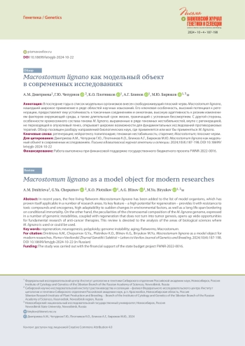 73. Simanov D., Mellaart-Straver I., Sormacheva I., Berezikov E. The flatworm Macrostomum lignano is a powerful model organism for ion channel and stem cell research. Stem Cells Int. 2012;2012(1):167265. DOI: 10.1155/2012/167265 EDN: RGMKEP