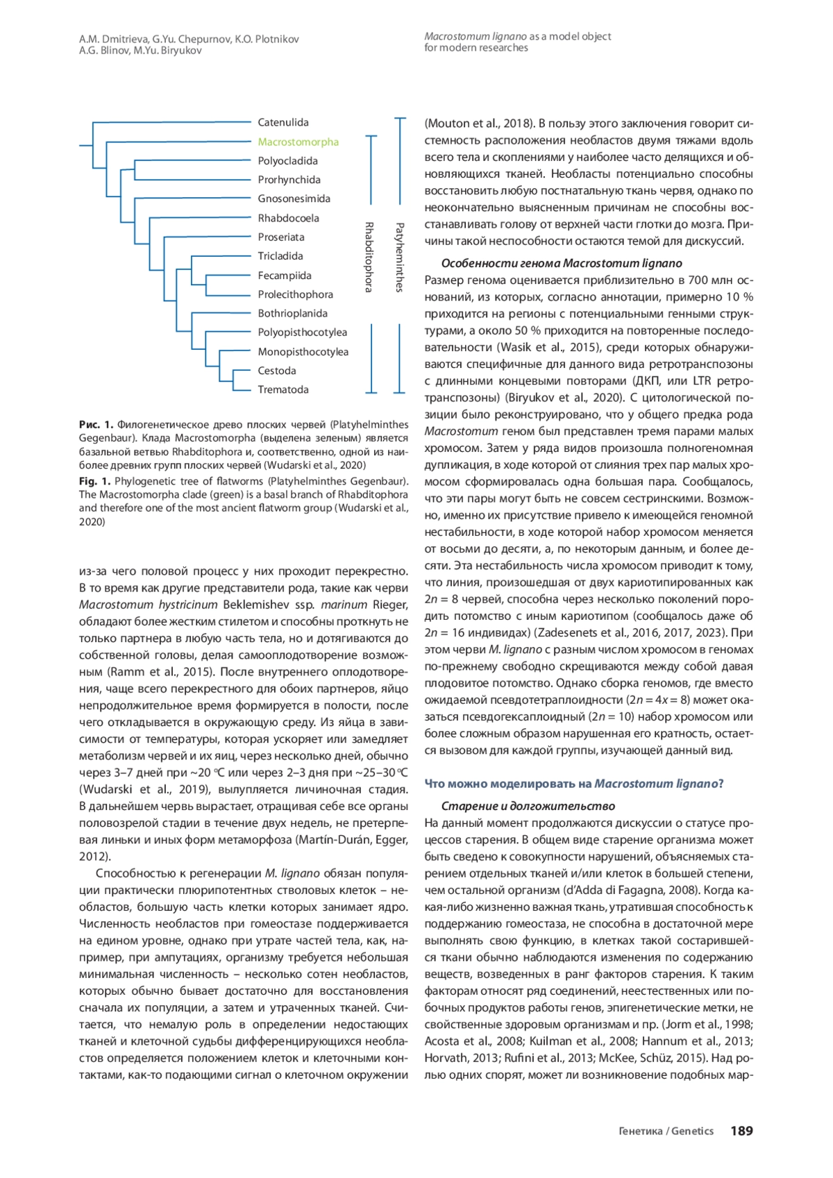 93. Zadesenets K.S., Rubtsov N.B. B chromosomes in free-living flatworms of the genus Macrostomum (Platyhelminthes, Macrostomorpha). Int. J. Mol. Sci. 2021;22(24):13617. DOI: 10.3390/ijms222413617 EDN: SWXRXB