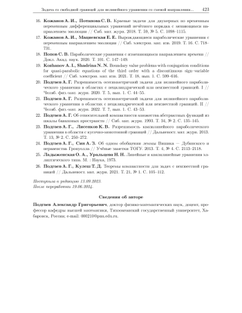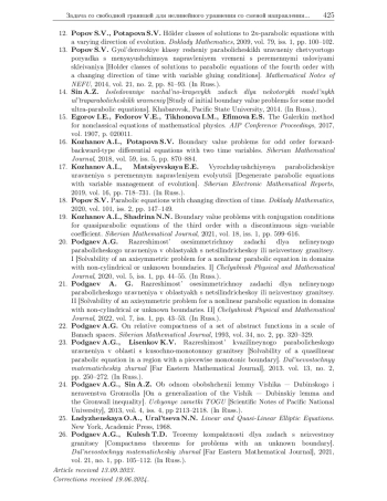 18. Попов С. В. Параболические уравнения с изменяющимся направлением времени // Докл. Акад. наук. 2020. Т. 101. С. 147-149.