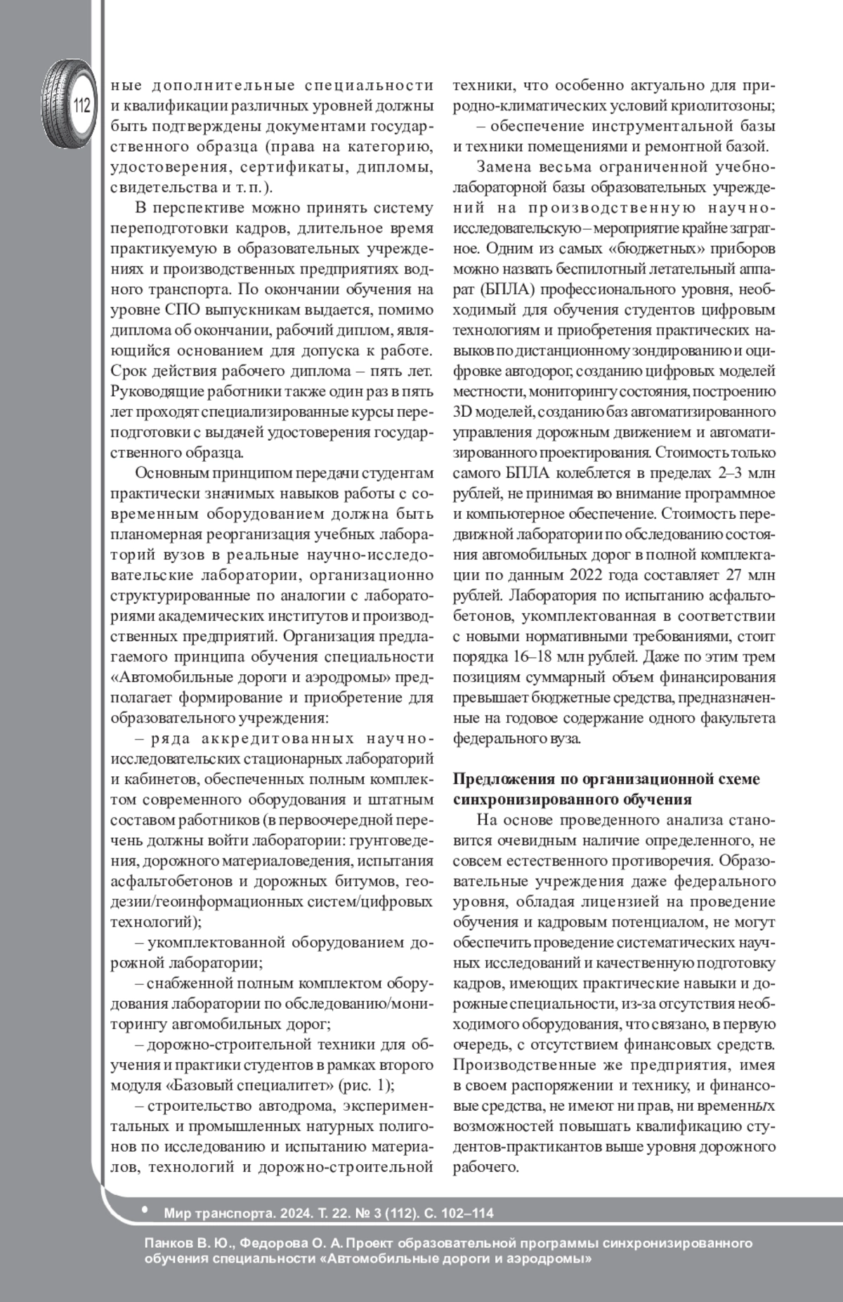 Статья: ПРОЕКТ ОБРАЗОВАТЕЛЬНОЙ ПРОГРАММЫ СИНХРОНИЗИРОВАННОГО ОБУЧЕНИЯ СПЕЦИАЛЬНОСТИ «АВТОМОБИЛЬНЫЕ ДОРОГИ И АЭРОДРОМЫ» (2024)