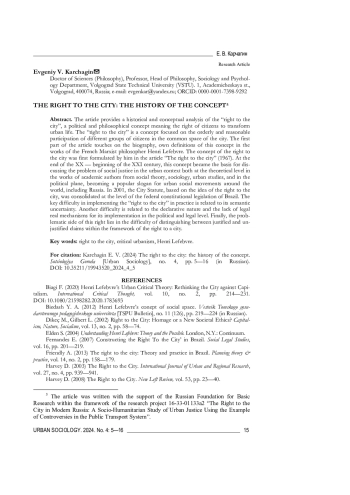 12. Dikeç M., Gilbert L. Right to the City: Homage or a New Societal Ethics? // Capitalism, Nature, Socialism. 2002. Vol. 13. No. 2. Pp. 58-74.