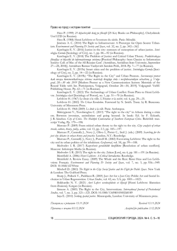 16. Harvey D. The Right to the City // International Journal of Urban and Regional Research. 2003. Vol. 27. No. 4. Pp. 939-941.