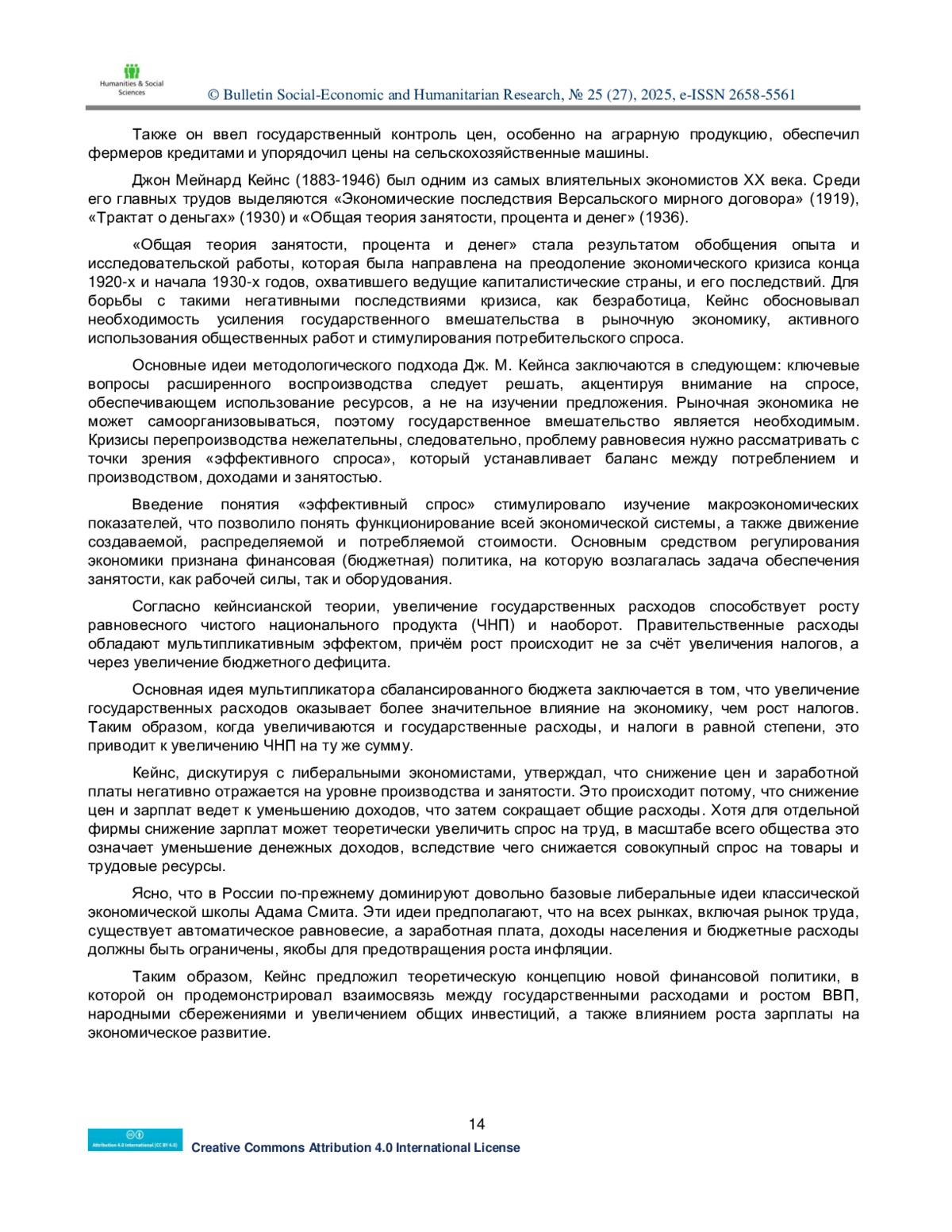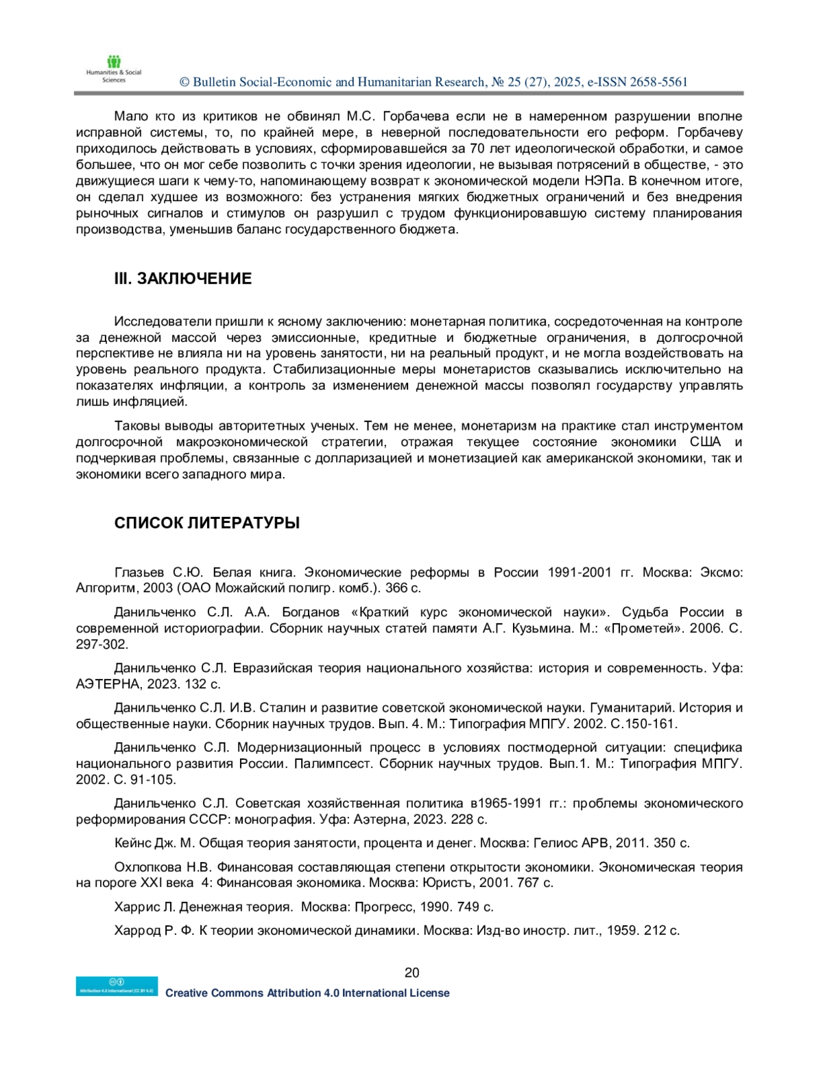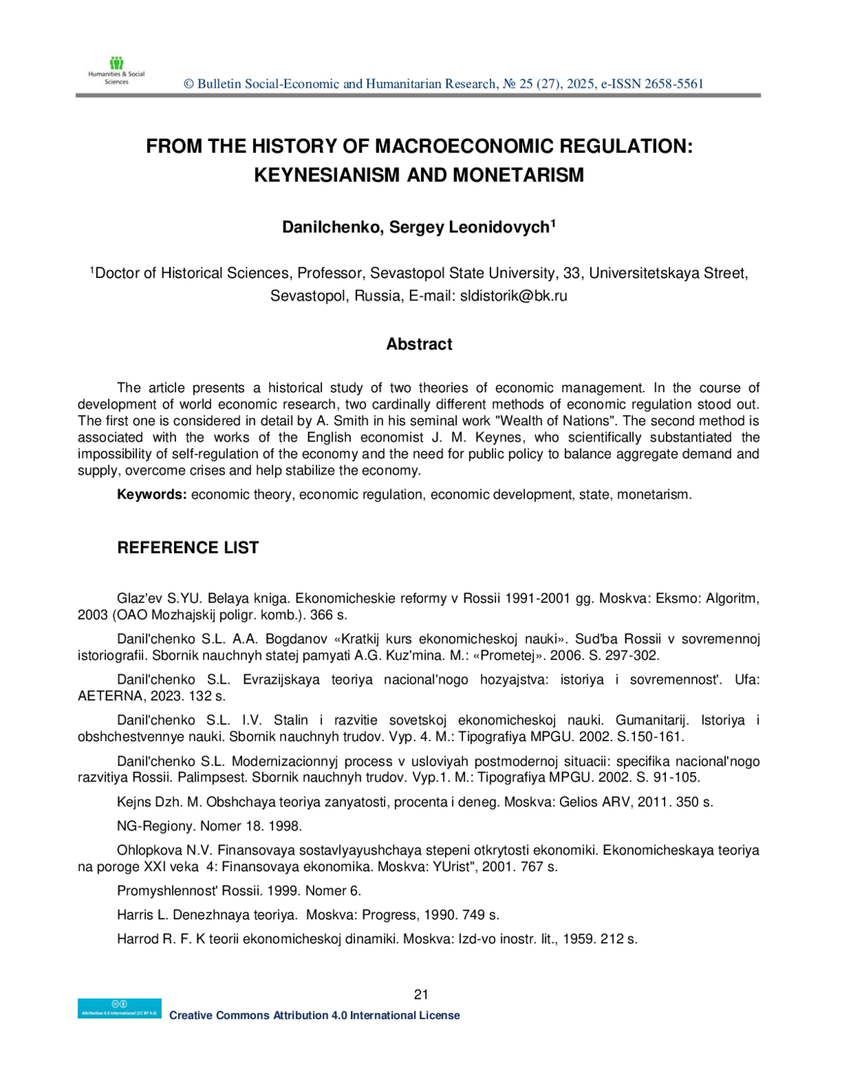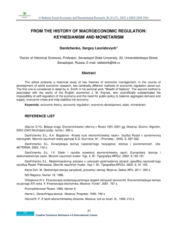 ДАНИЛЬЧЕНКО С. Л. FROM THE HISTORY OF MACROECONOMIC REGULATION: KEYNESIANISM AND MONETARISM // BULLETIN SOCIAL-ECONOMIC AND HUMANITARIAN RESEARCH. 2025. № 25 (27)