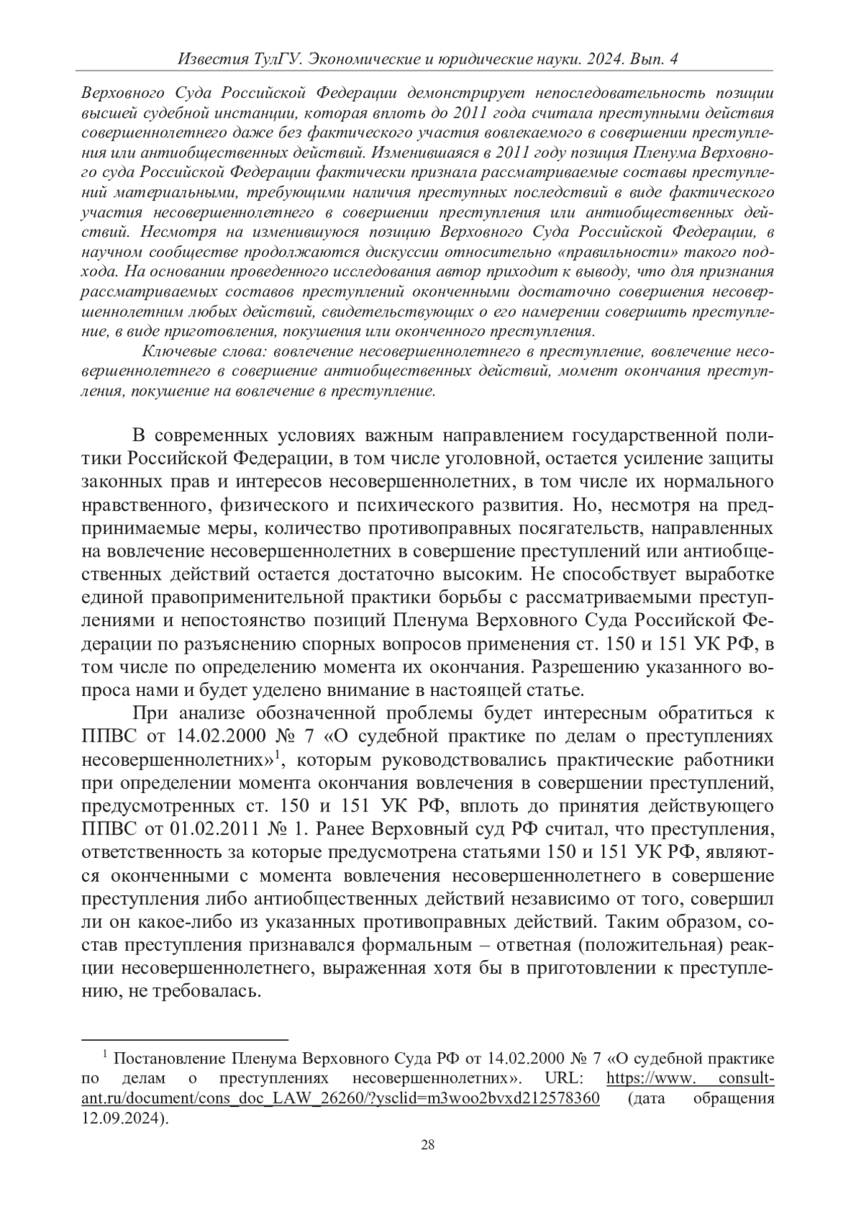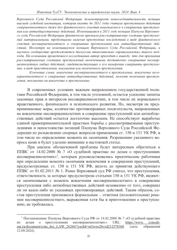 7. Морозов А.И. Проблемы толкования и применения статьи 150 УК РФ // Уголовное право. 2013. № 1. С. 54-59. EDN: PVSKUZ