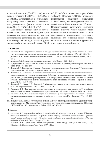 8. Саввичева И.К. Направления, методы и результаты селекции желтого люпина на Новозыбковской опытной станции // Саввичевские научные чтения: сб. статей. - Брянск, 2003. - С. 18-28.