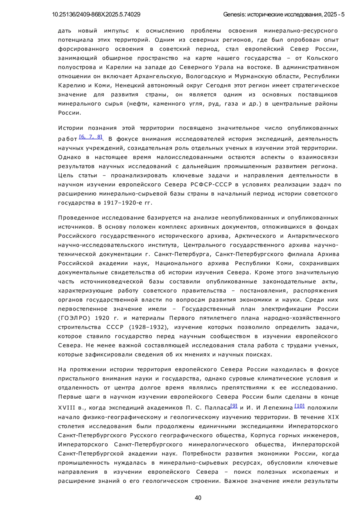 8. Бровина А. А. Научное освоение европейского Севера России (конец XIX - первая половина XX в.). Сыктывкар: ФИЦ Коми НЦ УрО РАН, 2022. 576 с. DOI: 10.19110/89606-047 EDN: NZZRCB