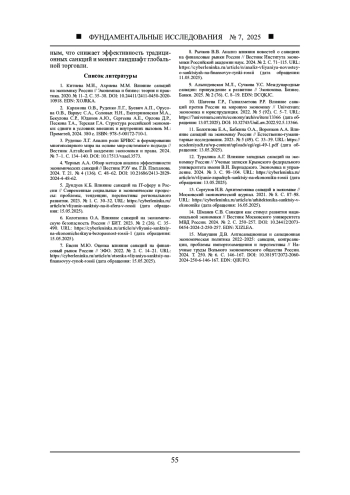 7. Евсин М.Ю. Оценка влияния санкций на финансовый рынок России // ЭФО. 2022. № 2. С. 14-21. URL: https://cyberleninka.ru/article/n/otsenka-vliyaniya-sanktsiy-na-finansovyy-rynok-rossii (дата обращения: 15.05.2025).