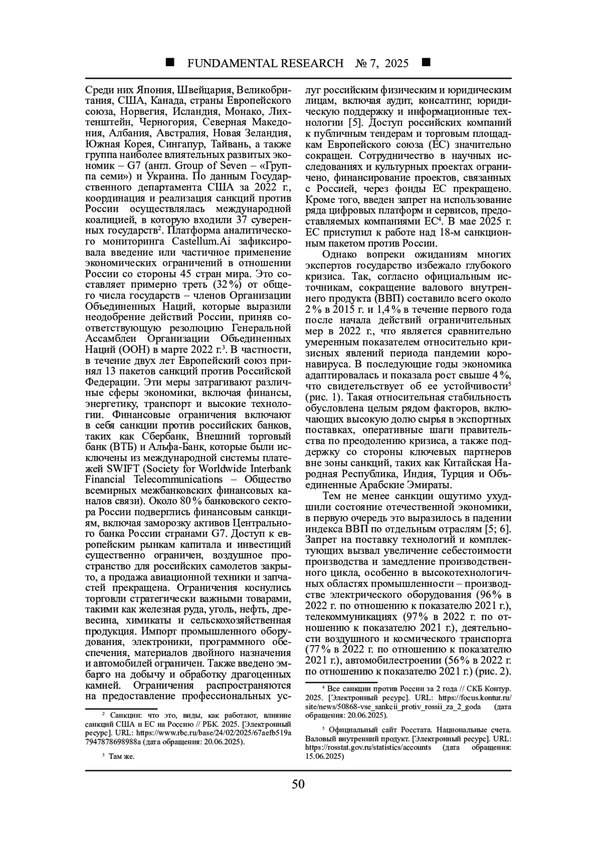 11. Болотнова Е.А., Бабкина О.А., Воронков А.А. Влияние санкций на экономику России // Естественно-гуманитарные исследования. 2023. № 5 (49). С. 33-39. URL: https://academiyadt.ru/wp-content/uploads/egi/egi-49-1.pdf (дата обращения: 13.05.2025).