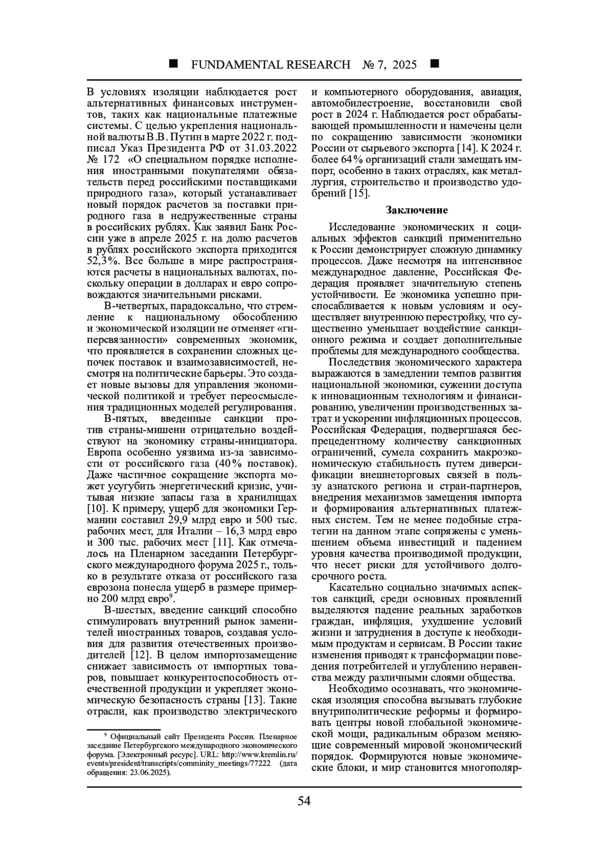 9. Альпидовская М.Л., Сучкова У.С. Международные санкции: принуждение к развитию // Экономика. Бизнес. Банки. 2025. № 2 (76). С. 8-19. EDN: DCQKJC