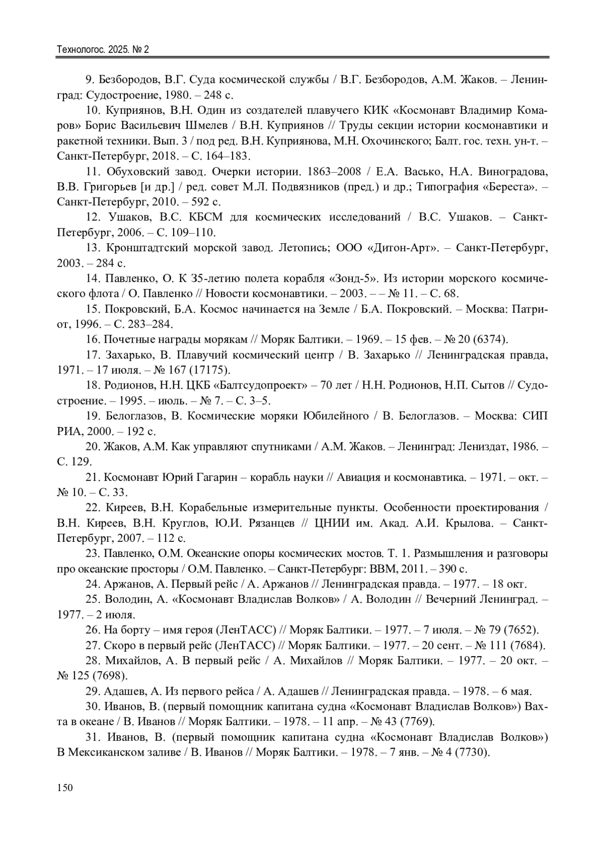 9. Безбородов, В.Г. Суда космической службы / В.Г. Безбородов, А.М. Жаков. - Ленинград: Судостроение, 1980. - 248 с.