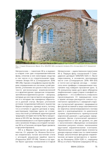 Статья: Архитектурное своеобразие поздневизантийской Верии и истоки его формирования (2024)