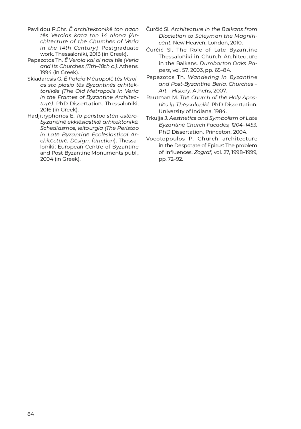Ключевые фразы: ВИЗАНТИЙСКАЯ АРХИТЕКТУРА, поздневизантийский период, ВЕРИЯ, МАКЕДОНИЯ, эпир, САЛОНИКИ