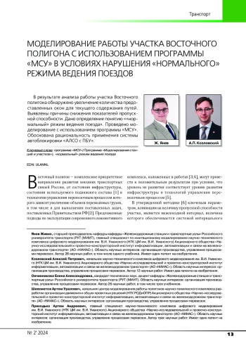Статья: МОДЕЛИРОВАНИЕ РАБОТЫ УЧАСТКА ВОСТОЧНОГО ПОЛИГОНА С ИСПОЛЬЗОВАНИЕМ ПРОГРАММЫ "МСУ" В УСЛОВИЯХ НАРУШЕНИЯ "НОРМАЛЬНОГО" РЕЖИМА ВЕДЕНИЯ ПОЕЗДОВ (2024)