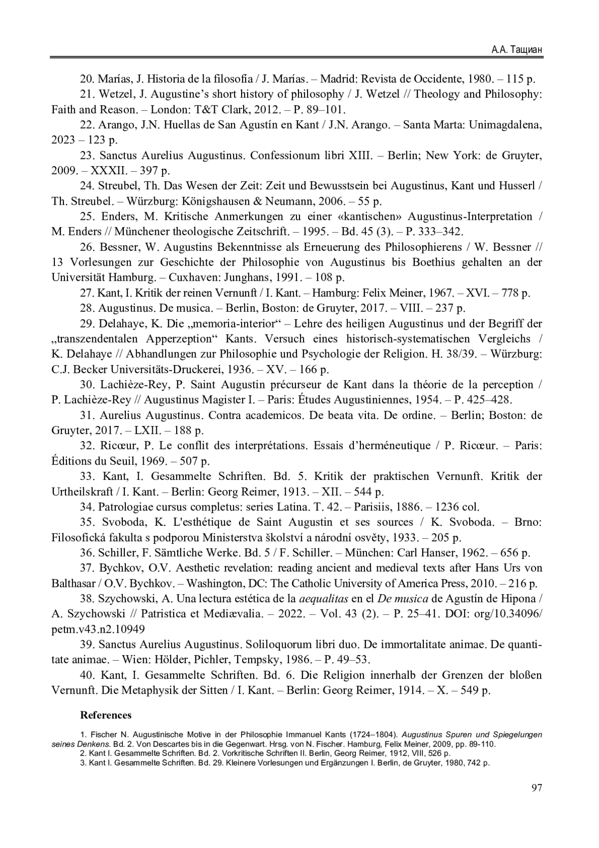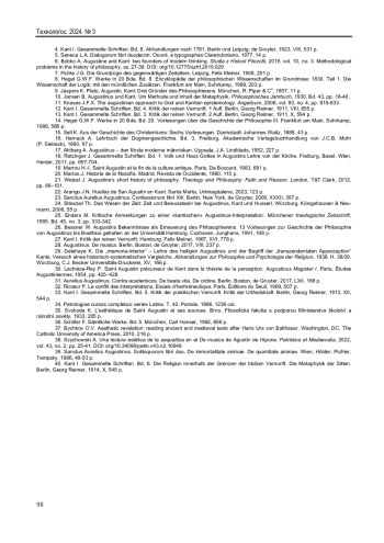 25. Enders, M. Kritische Anmerkungen zu einer “kantischen” Augustinus-Interpretation / M. Enders // Münchener theologische Zeitschrift. - 1995. - Bd. 45 (3). - P. 333-342.