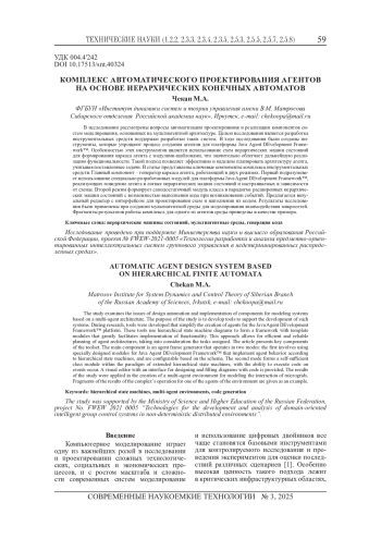 Статья: КОМПЛЕКС АВТОМАТИЧЕСКОГО ПРОЕКТИРОВАНИЯ АГЕНТОВ НА ОСНОВЕ ИЕРАРХИЧЕСКИХ КОНЕЧНЫХ АВТОМАТОВ (2025)