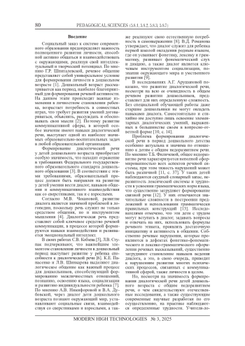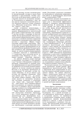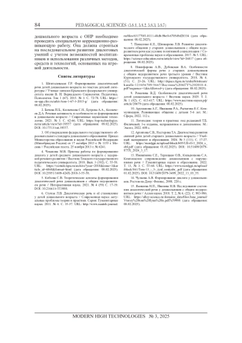 5. Кобзева С.В. Теоретические аспекты формирования диалогической речи дошкольников с общим недоразвитием речи // Интерактивная наука. 2021. № 4 (59) С. 17-19. DOI: 10.21661/r-553980 EDN: UUHYLC