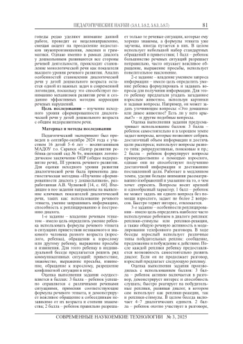 15. Яковлева Н.П., Иванова Н.В. Исследование состояния диалогической речи у дошкольников с общим недоразвитием речи // Аллея науки. 2018. Т. 2, № 6. (22). С. 983-986. URL: https://alley-science.ru/domains_data/files/June_journal/Vtoroy%20tom%20Iyun%20is.pdf?x59998 (дата обращения: 08.02.2025). EDN: XTRFPN
