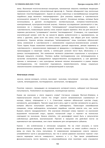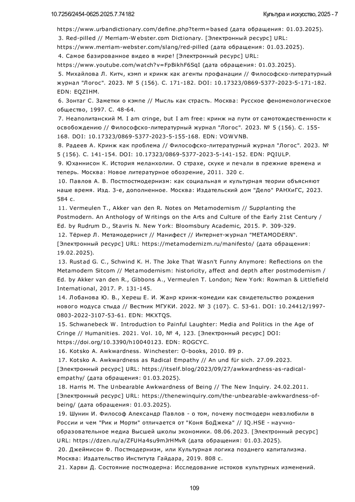7. Неаполитанский М. I am cringe, but I am free: кринж на пути от самотождественности к освобождению // Философско-литературный журнал “Логос”. 2023. № 5 (156). С. 155-168. DOI: 10.17323/0869-5377-2023-5-155-168.