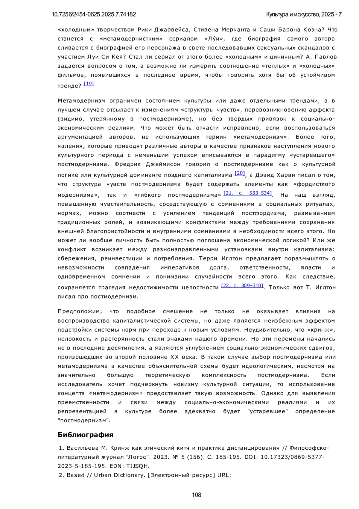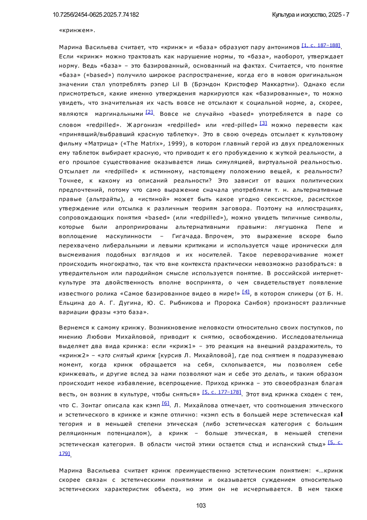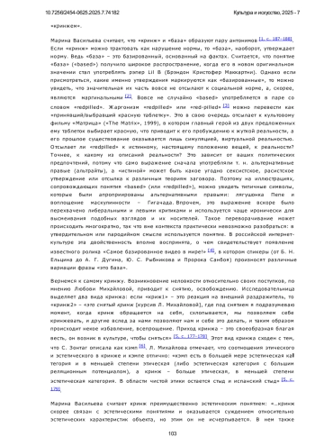 1. Васильева М. Кринж как этический китч и практика дистанцирования // Философско-литературный журнал “Логос”. 2023. № 5 (156). С. 185-195. DOI: 10.17323/0869-5377-2023-5-185-195.