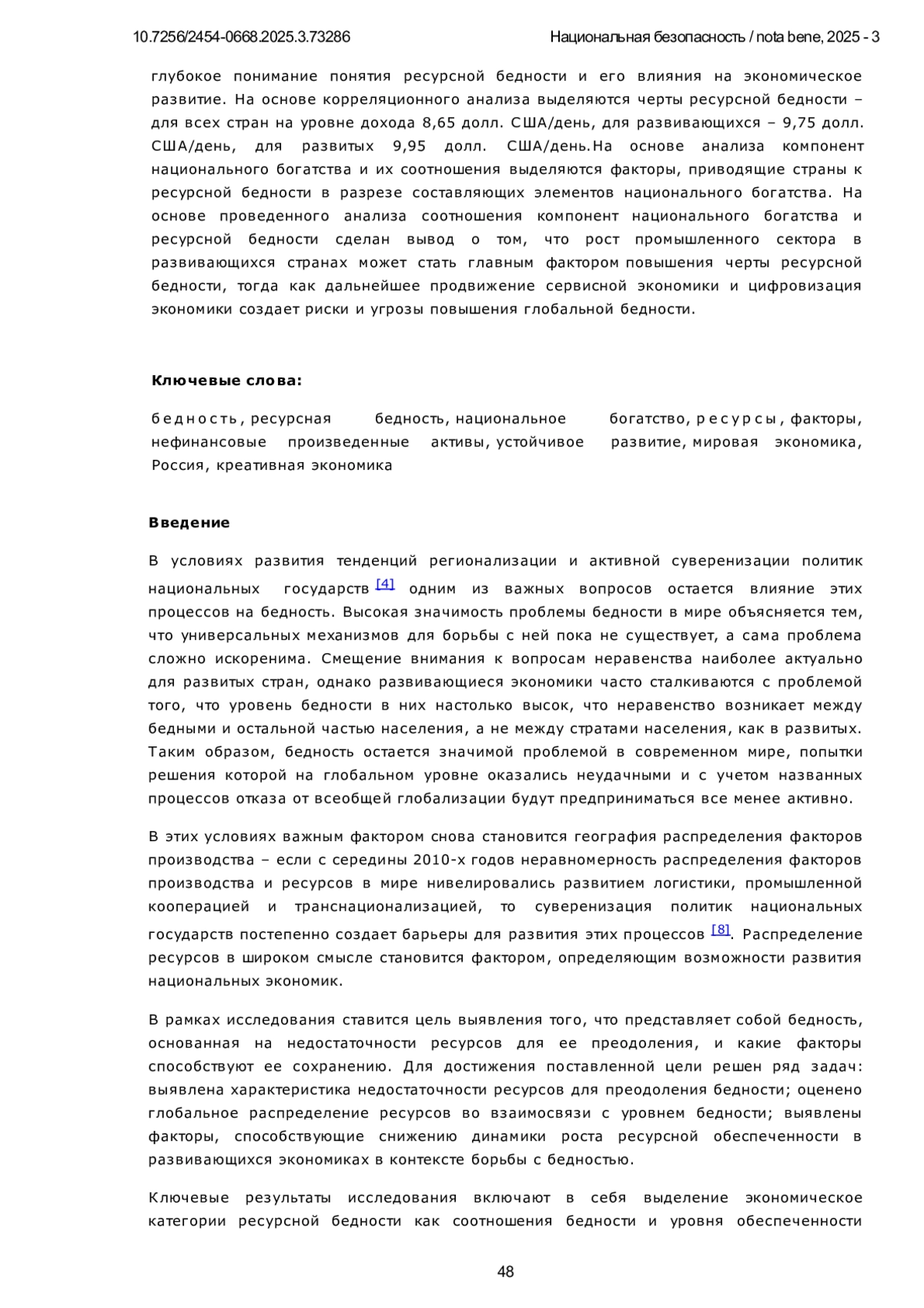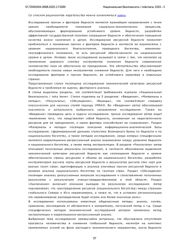 АРЖАЕВ Ф. И. ЭКОНОМИЧЕСКАЯ КАТЕГОРИЯ РЕСУРСНОЙ БЕДНОСТИ – ФАКТОРНЫЙ АНАЛИЗ // НАЦИОНАЛЬНАЯ БЕЗОПАСНОСТЬ / NOTA BENE. 2025. № 3