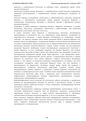 Статья: Экономическая категория ресурсной бедности – факторный анализ (2025)