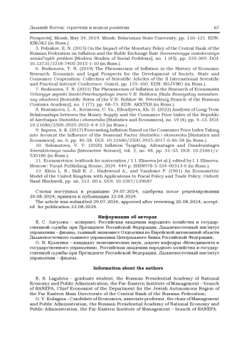 Ключевые фразы: инфляция, модель векторной авторегрессии, прогнозирование инфляции, ЕВРЕЙСКАЯ АВТОНОМНАЯ ОБЛАСТЬ