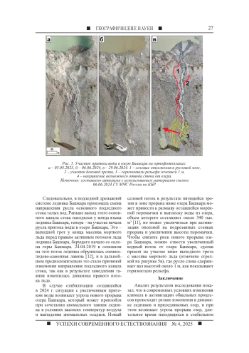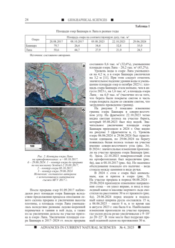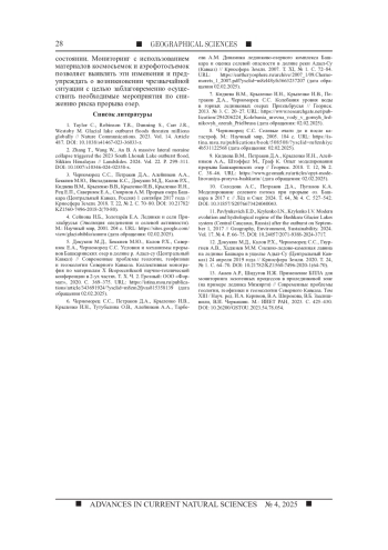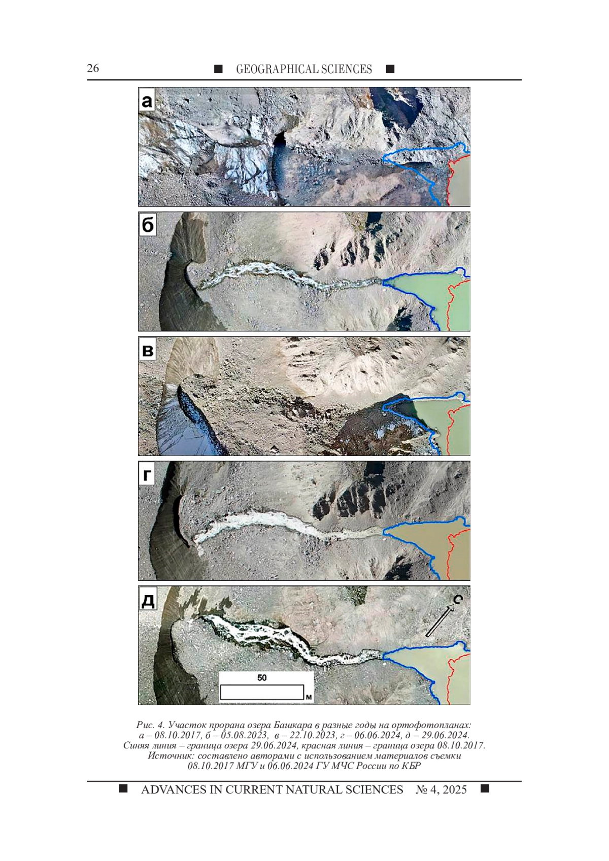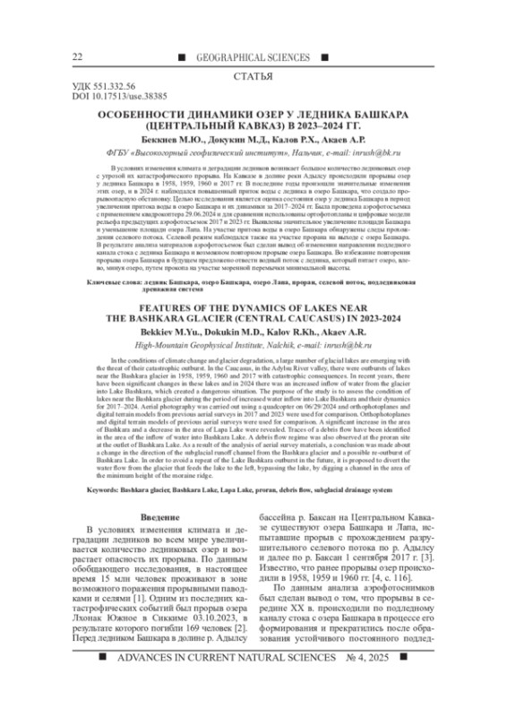 11. Pavlyukevich E.D., Krylenko I.N., Krylenko I.V. Modern evolution and hydrological regime of the Bashkara Glacier Lakes system (Central Caucasus, Russia) after the outburst on September 1, 2017 // Geography, Environment, Sustainability. 2024. Vol. 17. № 4. P. 66-75. DOI: 10.24057/2071-9388-2024-3717 EDN: DXGNGR