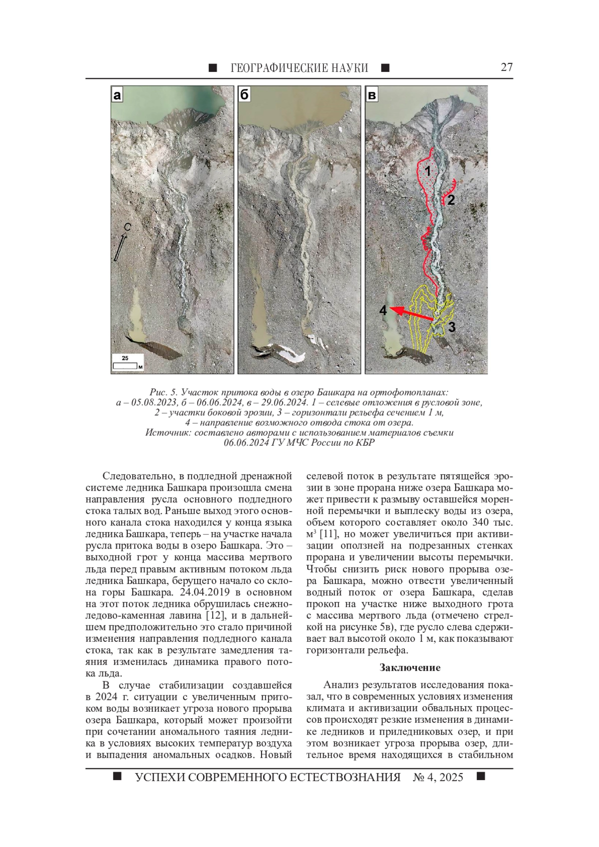 5. Докукин М.Д., Беккиев М.Ю., Калов Р.Х., Савернюк Е.А., Черноморец С.С. Условия и механизмы прорывов Башкаринских озер в долине р. Адыл-су (Центральный Кавказ) // Современные проблемы геологии, геофизики и геоэкологии Северного Кавказа. Коллективная монография по материалам X Всероссийской научно-технической конференции в 2-ух частях. Т. X. Ч. 2. Грозный: ООО “Формат”, 2020. С. 369-375. URL: https://istina.msu.ru/publications/article/343691924/?ysclid=m8zm2fjvas815358139 (дата обращения 02.02.2025). EDN: GJAUHA