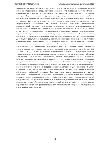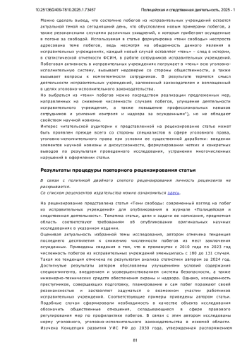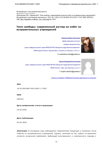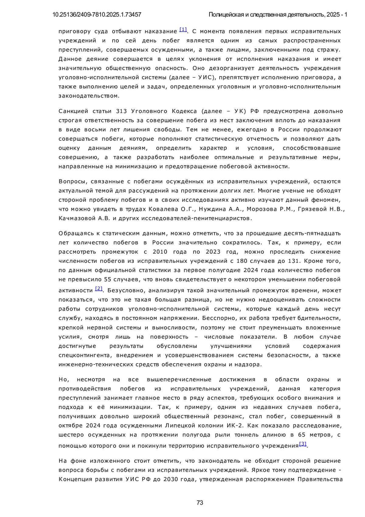 1. Ковалев, О.Г. Пути преодоления побеговой активности осужденных в современных условиях развития УИС // Вестник Кузбасского института. - 2022. - № 2 (51). - С. 65-72.