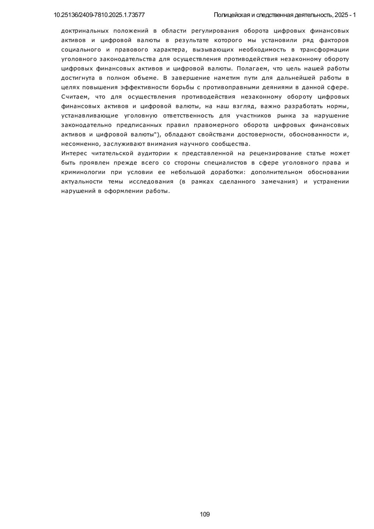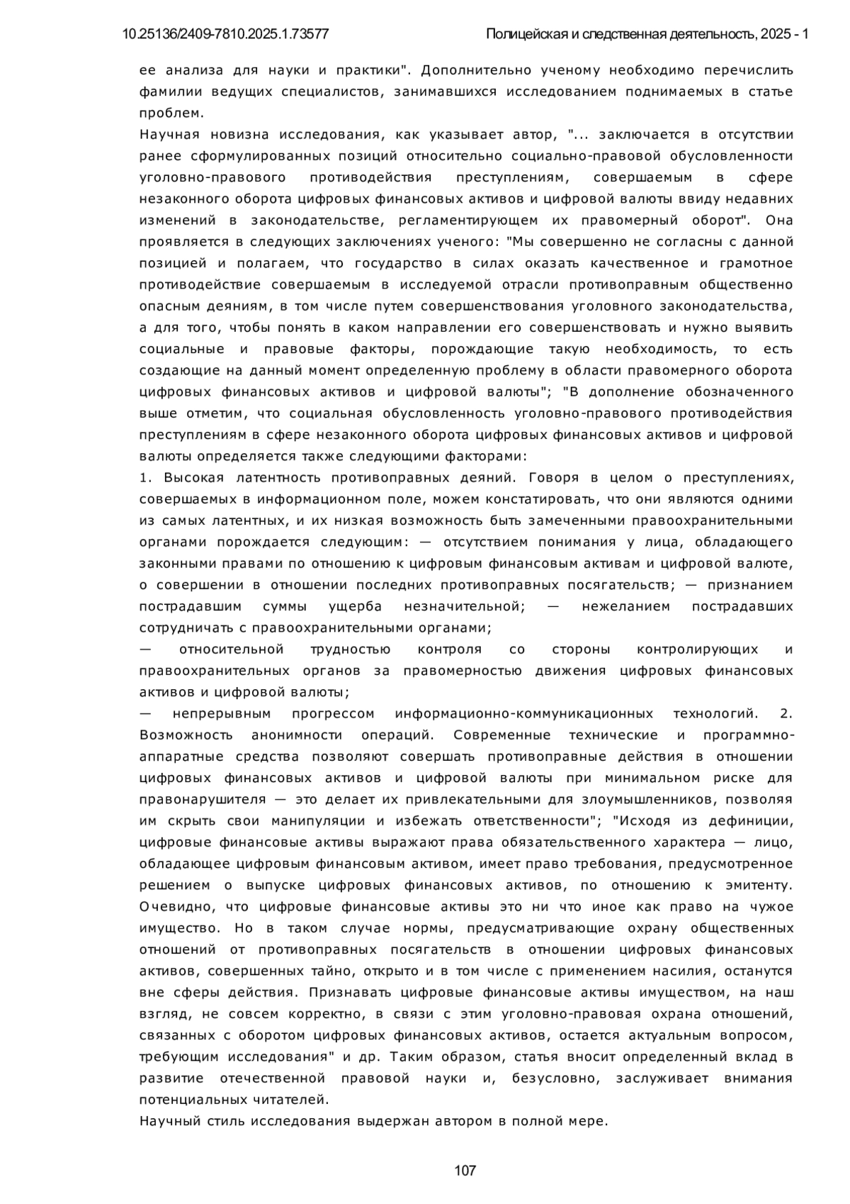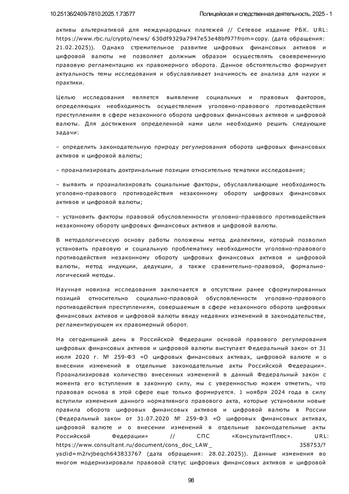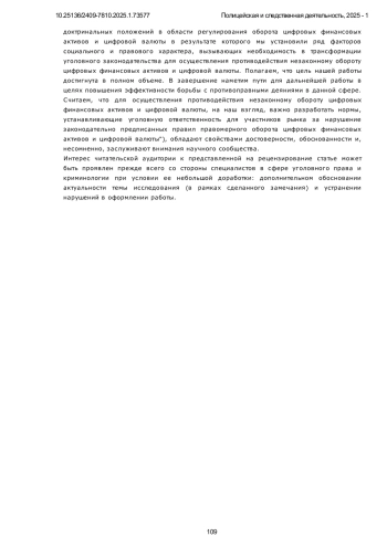 Статья: О необходимости уголовно-правового противодействия преступлениям в сфере незаконного оборота цифровых финансовых активов и цифровой валюты (2025)