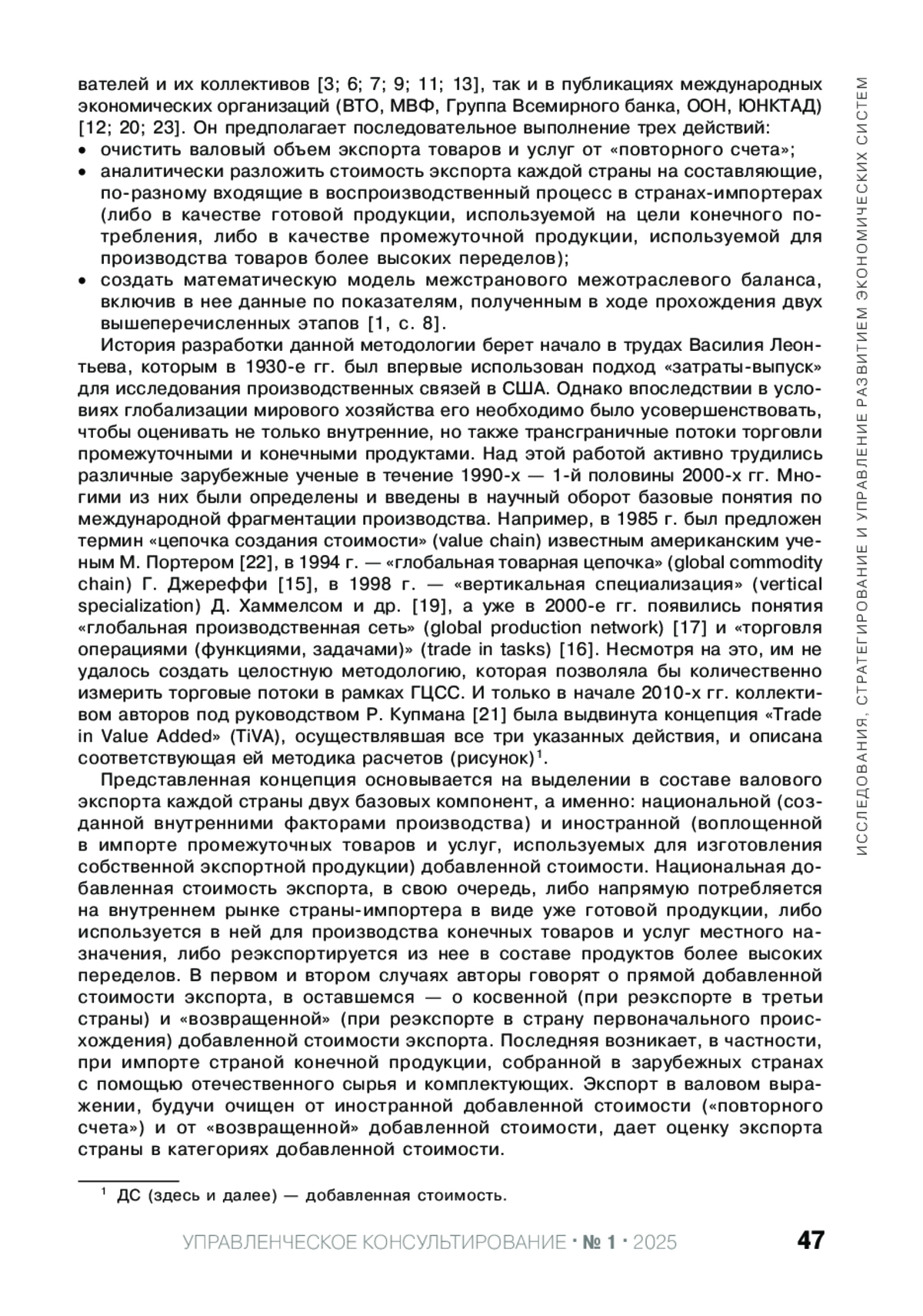 1. Варнавский В. Г. Международная торговля в категориях добавленной стоимости: вопросы методологии // Мировая экономика и международные отношения. 2018. Т. 62. № 1. С. 5-15. DOI: 10.20542/0131-2227-2018-62-1-5-15 EDN: YMGSON